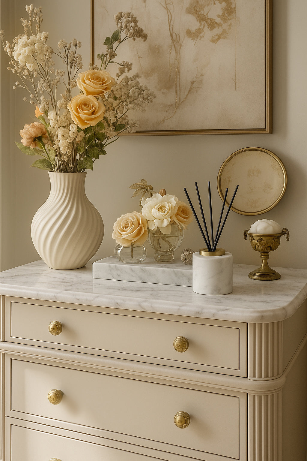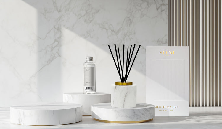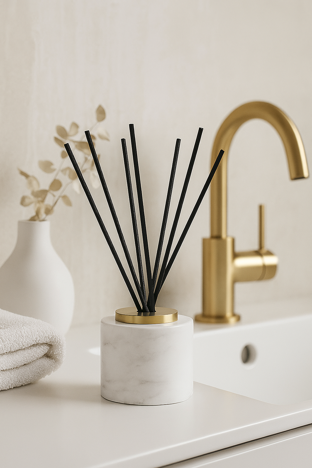 Scent in Style with the Gilded Marble Reed Diffuser. Elevate your space with a statement piece that looks and smells amazing.